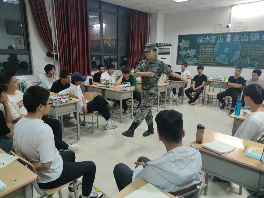 动驾2102班刘大洋同学作为退伍老兵,用亲身经历鼓励全体同学:一要端正态度、超越自我。要有战高温、斗酷暑的思想准备,以饱满的精神投入紧张、艰苦的训练中来,以出色的表现开启军训生活。二要转变角色、融入集体。要发扬爱国主义精神和集体主义精神,学习军人的政治素质、严明纪律和过硬作风,勤勉互助,众志成城,争当生活和学习的佼佼者,尽快融入军训连队这个和谐奋进的大家庭。三要保持品质、成就未来。要把军训的体验带到今后的学习生活中去,把百折不挠的意志和永不言败的斗志,化为大学学习生活的底色,迎难而上,成才圆梦。