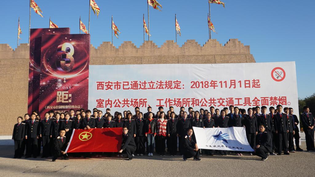 10月29日上午,《西安市控制吸烟管理办法》实施启动仪式暨宣传活动在西安曲江大明宫国家遗址公园丹凤门广场隆重举行,鸭脖学生志愿者服务队参加活动。