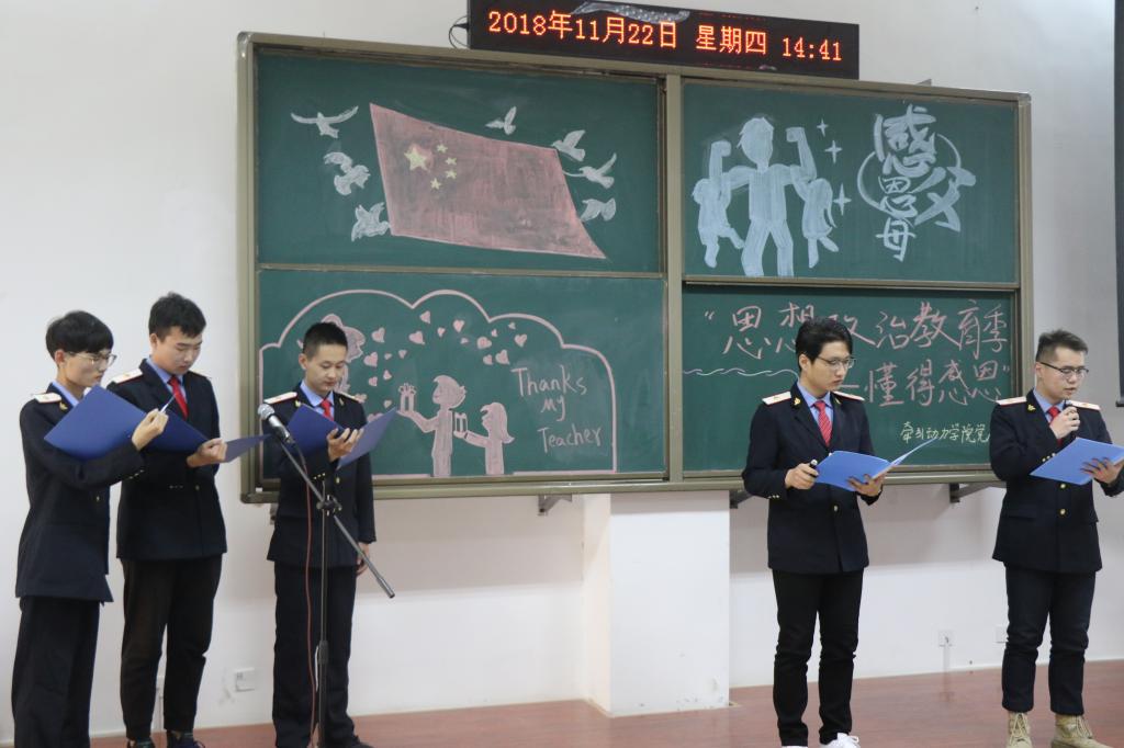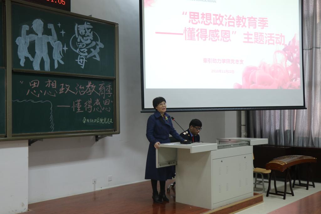 11月22日下午,牵引动力学院党总支在一楼阶梯教室举办了“第四届思想政治教育季——懂得感恩”活动,鸭脖党总支书记和晋秦、学工办主任王智敏、全体辅导员班主任以及学生代表200余人参加了本次活动。