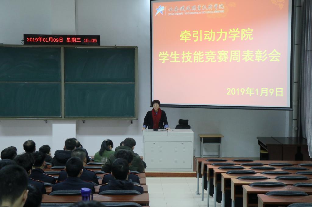 为更好激励学生提升实践动手能力和培养团队合作等能力,牵引动力学院于1月9日召开了学生技能竞赛周表彰会。牵引动力学院院长李益民、党总支书记和晋秦,各专业教研室主任和专业带头人及获奖学生参加大会。大会由该院办公室主任丁洪芬主持。