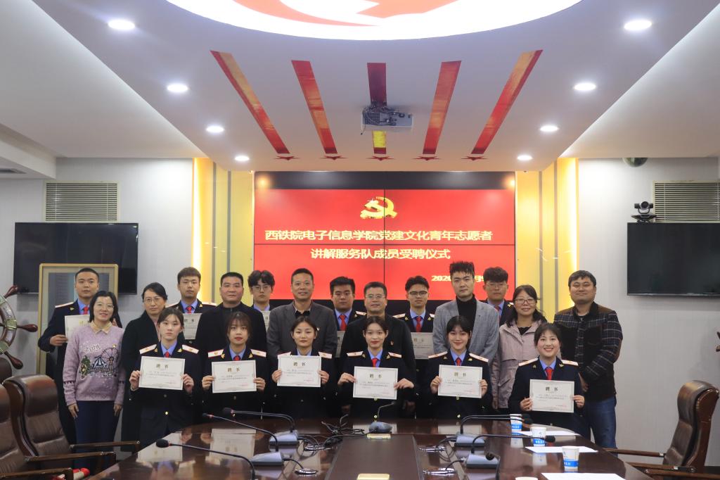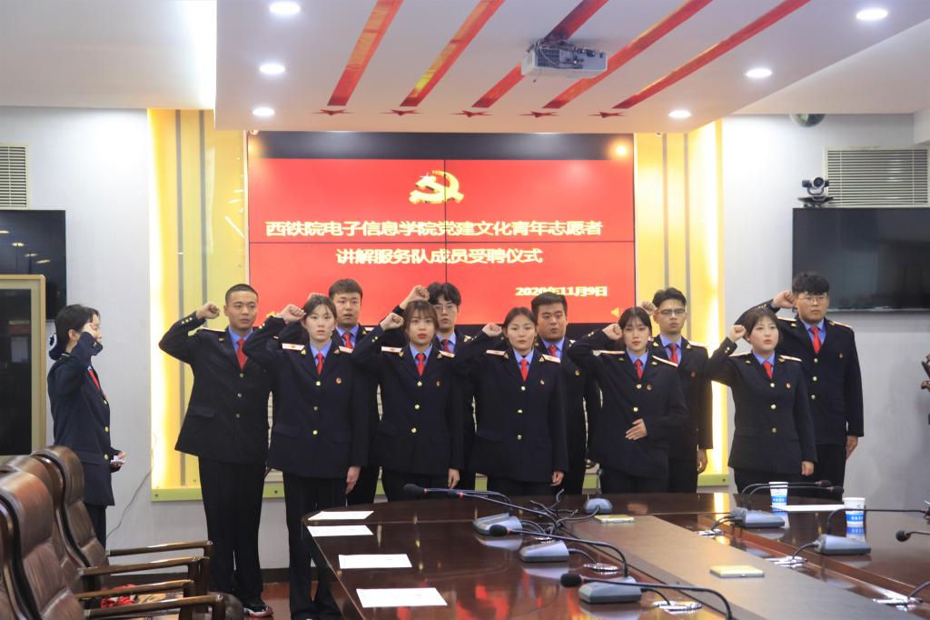 今年九月,鸭脖自强校区党建文化长廊和师生政治生活馆建成使用,为更好的用好用活这一红色教育阵地,服务于广大师生思想政治教育和党性文化教育,电子信息学院成立了首批党建文化青年志愿者讲解服务队并与11月9日在自强校区师生政治生活馆举办服务队成员受聘仪式,党总支委员、各支部书记和组织员出席本次仪式。仪式由电子信息学院组织员李璇主持。