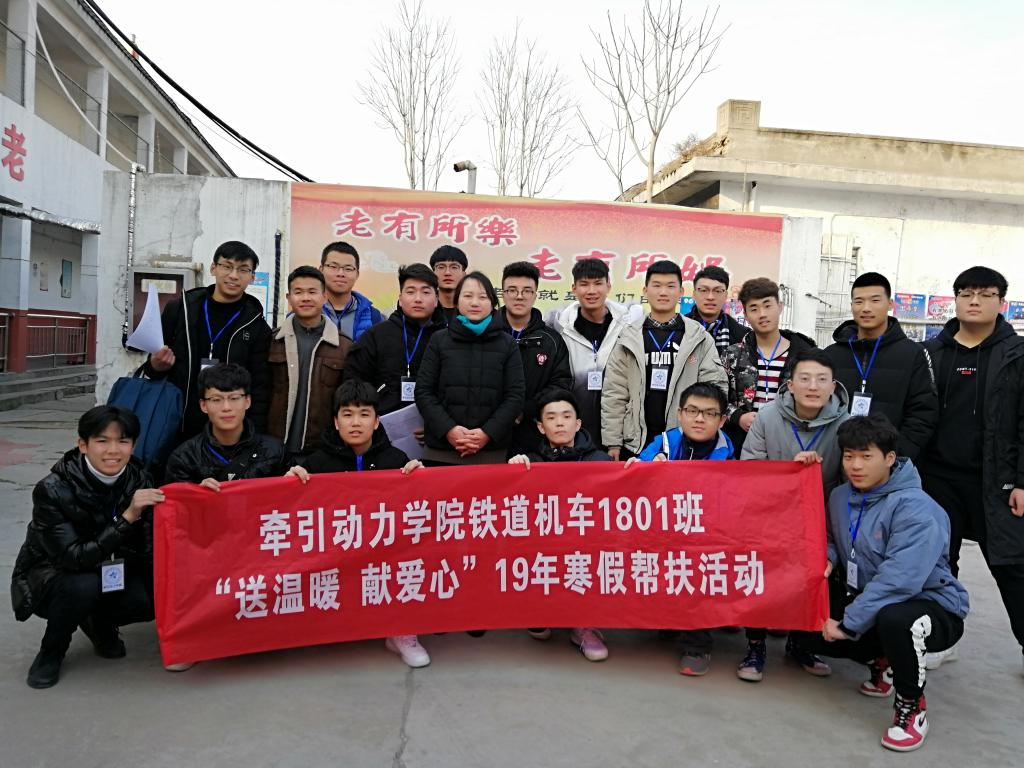 1月25日,牵引动力学院党总支组织铁道机车1801班二十余名同学一同走进草滩敬老院开展了一次“送温暖 献爱心”寒假公益帮扶活动。同学们对餐厅、院落、窗户等进行认真、彻底地打扫;有的同学与老人们亲切、热情地聊天,详细了解老人们的生活状况,给老人们送上一份温馨和幸福;还有的同学搀扶老人下床走路,主动帮助老人洗头、喂饭等,个个都很认真;同学们尽自己最大的能力把快乐与温暖送给了老人,并向他们表达诚挚的问候和祝福,学生们出色的表现赢得了众人的赞誉。