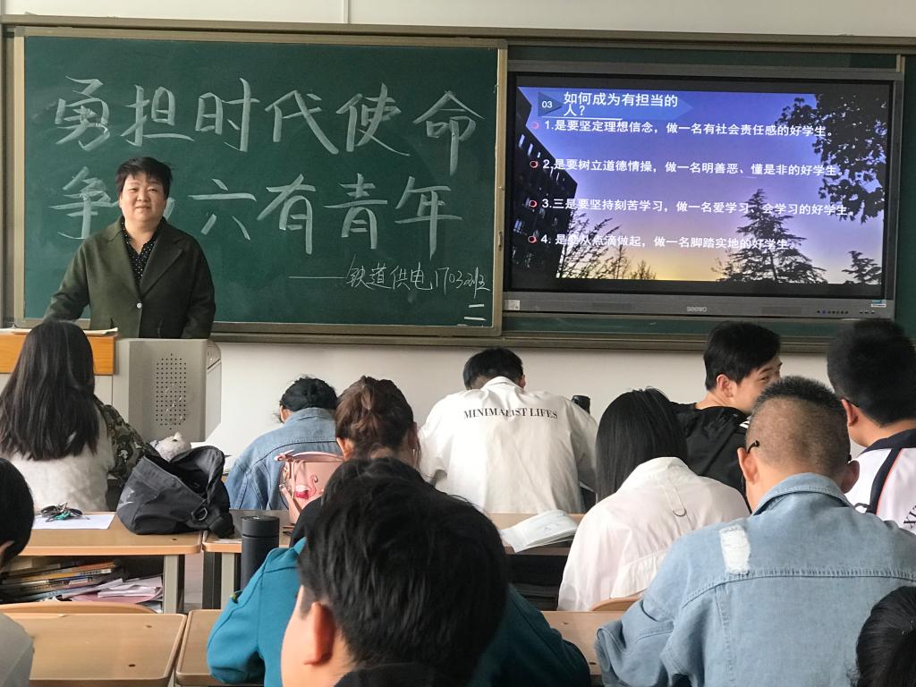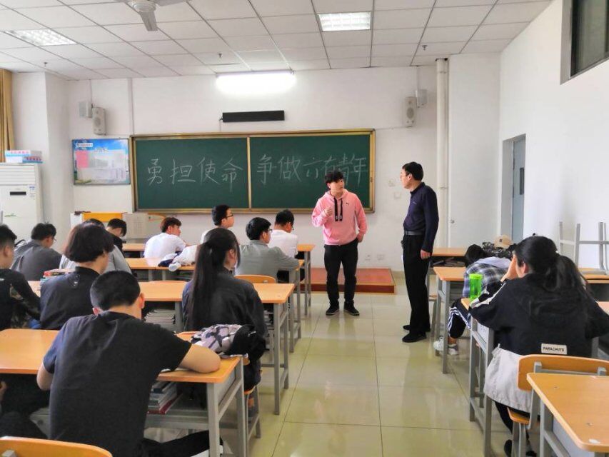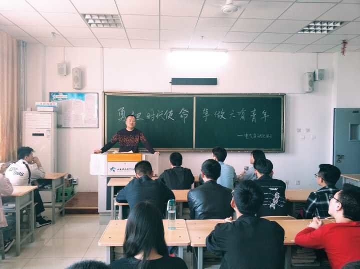 4月19日下午,电气工程学院“勇担时代使命,争做六有青年”主题班会在大一、大二年级22个班教室召开,学院党总支书记任建国、学工办主任马纪和全体辅导员走进教室,与学生一道开好主题班会。