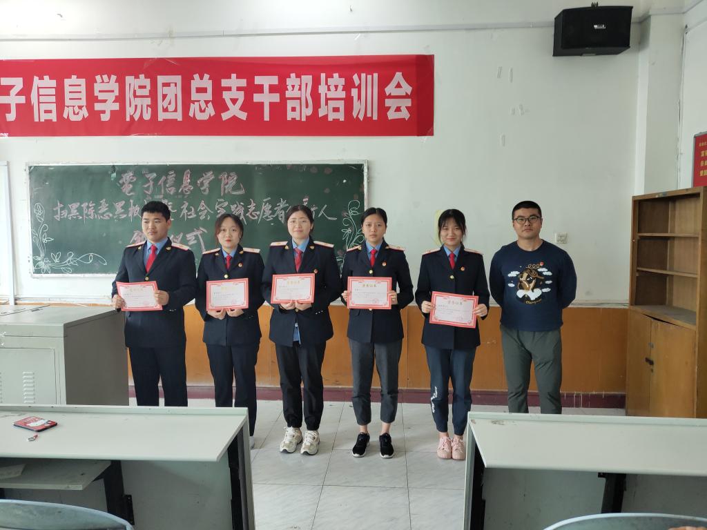 本次黑板报颁奖仪式由以下环节组成,团总支宣传部部长吴新文宣读黑板报优秀班级以及积极分子;由学工办辅导员老师为获奖的班级和个人进行颁奖;紧接着由主持人为大家致黑板报获奖词;接下来进行了黑板报制作与扫黑除恶知识竞答活动,同学们积极踊跃进行问题回答。