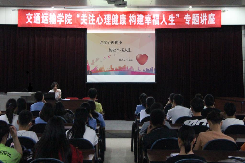 大学阶段是人生成长和发展的关键时期,大学生必须正确认识自己的心理发展特点,加强心理素质培养。为普及心理健康知识,提高同学们对心理健康问题的重视并给予同学们正确的引导,交通运输学院于6月10日在自强校区实验楼大电化教室开展了“关注心理健康,构建幸福人生”心理健康知识主题讲座。国家二级心理咨询师、陕西省心理咨询师协会成员、交通运输学院学工办何亚红老师为同学们进行现场讲解。