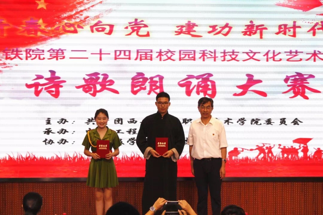 来自学院七个二级学院共有14个节目参赛。比赛中,选手们以其铿锵有力的气势,饱满深情的朗诵,表达了对祖国、对民族的热爱。经过激烈角逐,电气工程学院《致先辈》获一等奖,交通运输学院《军礼》、机电工程学院 《请铭记,雾重庆》获二等奖,土木工程学院《烈士》、电气工程学院《青春中国》、土木工程学院《中国人,不跪的人》获三等奖。