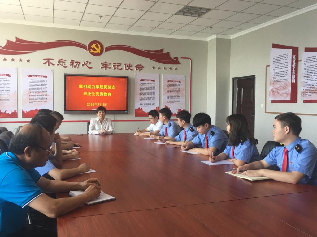 牵引动力学院党总支书记和晋秦对毕业生党员进行了主题为“不忘初心、牢记使命”的教育。最后对毕业生党员提出了三点希望:一是要不断增强党性修养,自觉履行党员义务,充分发挥党员的先锋模范带头作用;二是要踏实做事,真诚做人;三是心怀感恩,努力奋进,要在今后工作中不仅争做业务尖子,还要争取做企业的党建骨干,为学院的人才培养工作增光添彩。