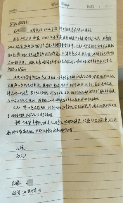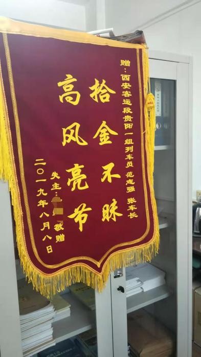 2019年8月8日,k1032次列车实习生范志强(就读于yabo鸭脖官网牵引动力学院动车组驾驶1701班)执勤期间,在14车厕所打扫卫生时,捡到一个钱包,钱包有3000多现金和多张银行卡,学生一卡通等重要证件。范志强在捡到钱包后立即报告了车长,找到失主后,在餐车将钱包归还于失主,失主在收到钱包后表示钱包完好如初,财物没有任何遗失。范志强拾金不昧的精神受到旅客和车长的称赞,并收到旅客亲手写的感谢信及锦旗。