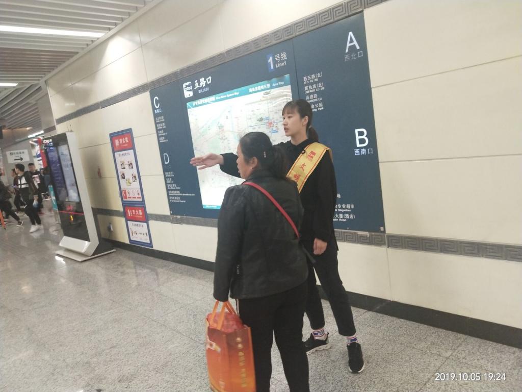 在西安地铁北大街站和五路口站的19名志愿者在9月30日至10月7日开展了为期8天的志愿服务,共计服务时长380小时,志愿者们主要帮助、引导乘客正确使用自动售取票机、维护站内秩序等,累计服务旅客约100万人次。