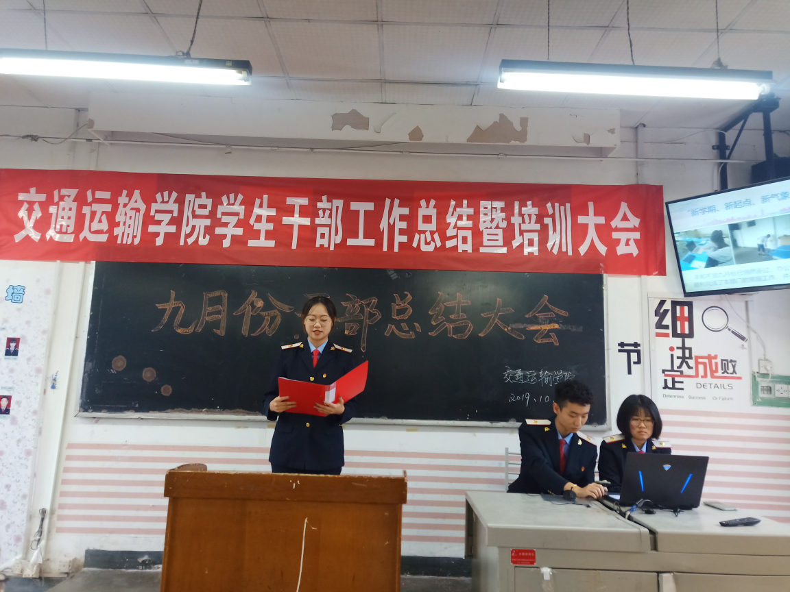 会上,交通运输学院团总支、学生会、新媒体中心三个组织进行了工作汇报;然后,与会老师随机抽取了团学组织办公室、纪检部等部门进行工作总结。发言代表分别围绕工作成绩、不足之处、改进方案、前景展望对九月份工作进行了汇报。大家热情饱满的姿态、积极向上的风貌、扎扎实实的成绩、认认真真的检视赢得了在场师生的阵阵掌声。
