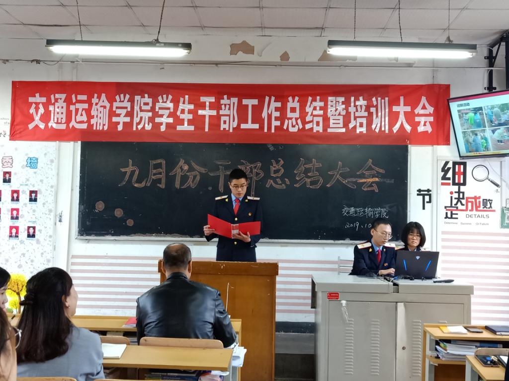 10月11日下午,“交通运输学院学生干部工作总结暨培训大会”在自强校区办公楼318教室举行。交通运输学院学生工作党支部书记孟永辉、支部教师党员、学生干部近百人参加了会议。