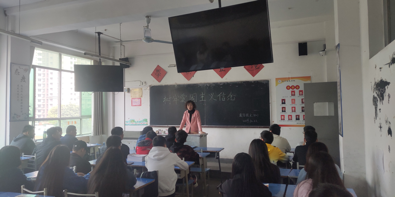 “树牢爱国主义信念”为主题的班会活动在各班陆续展开,主题班会上,通过班主任讲解、学生代表发言、小组同学积极讨论等形式,让同学们更加全面、系统地学习当代爱国主义的丰富内容,把个人奋斗目标与实现“中国梦”的共同理想结合起来。