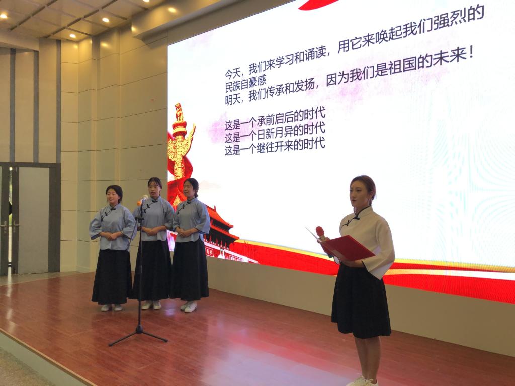 比赛中各参赛班级在优美音乐的伴奏下,朗诵时而低沉婉转、时而慷慨激昂、时而纯真热情。《青春中国》《祖国啊,我亲爱的祖国》《中华颂》《祖国,我爱你》《少年中国说》……一首首诗歌歌颂了伟大祖国走过不平凡的70年,诵出了对伟大祖国的赞歌,饱含着学生对祖国母亲的真挚祝福和无限热爱。《水调歌头》《永遇乐京口北固亭怀古》《破阵子·为陈同甫赋壮词以寄之》《将进酒》等古代诗词则带大家走进了古代文学的殿堂,共同欣赏了古诗的魅力和传统文化的博大精深。
