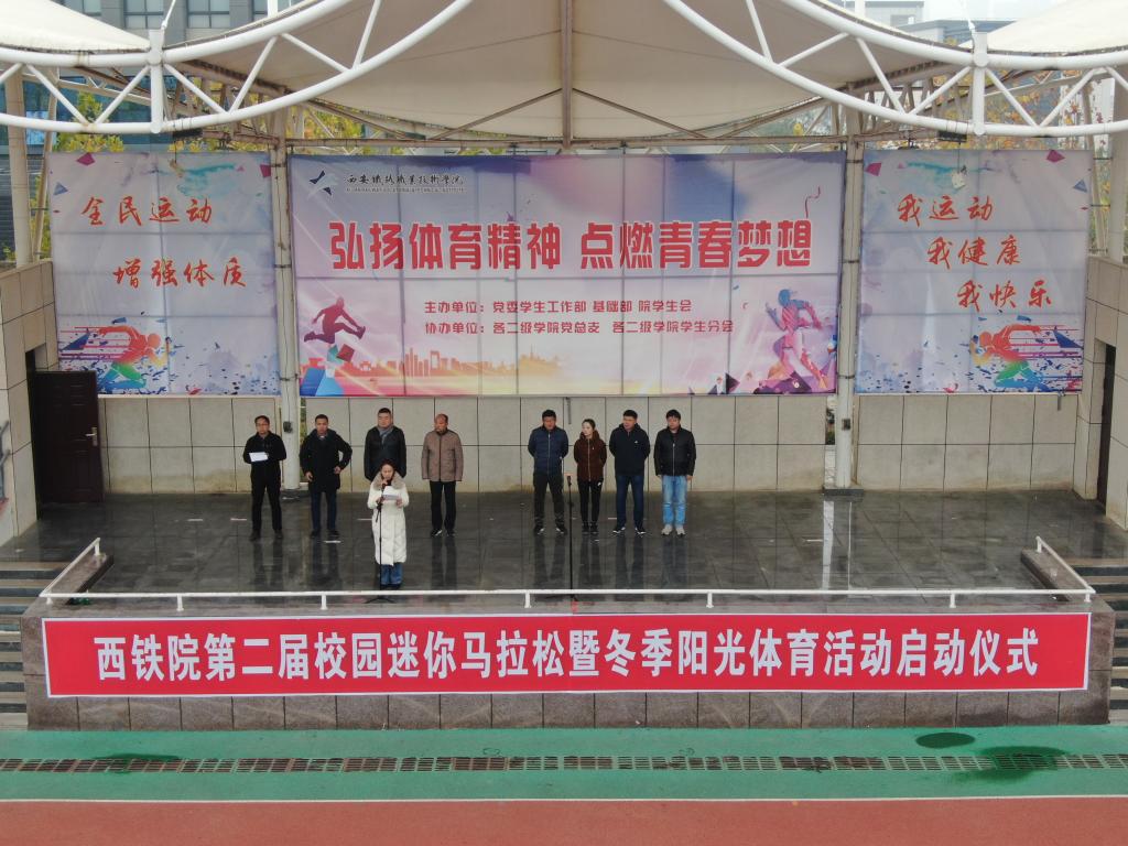 11月30日学院第二届“奔跑吧 青年”校园迷你马拉松暨第十三届冬季阳光体育趣味运动会启动仪式在港务校区操场举行。
