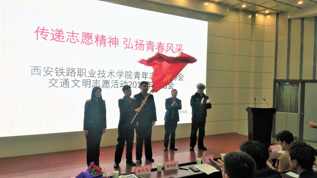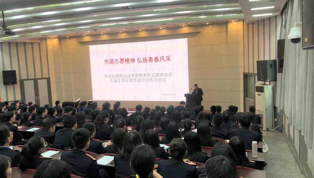 为提高大学生文明交通意识和安全意识,进一步弘扬志愿服务精神,传播文明交通正能量。12月26日下午,学院团委联合西安交警莲湖大队在自强校区阶梯教室,开展以“守规则,除隐患,安全文明出行”为主题的交通文明宣传活动。交警莲湖大队王波副大队长,崔皓哲警官,团委书记张治平,团委办公室主任朱叶以及学院2019级200余名青年志愿者代表共同参加此次活动。团干田辰主持会议。