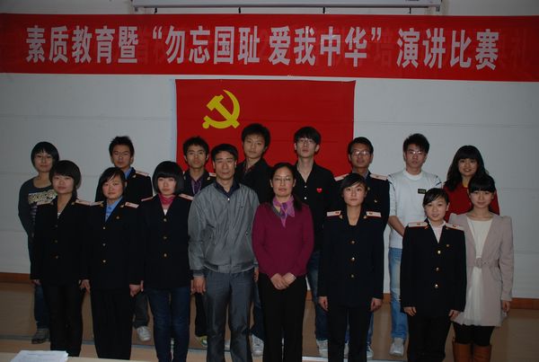 为了贯彻校区关于加强学生素质教育的工作要求和安排,政治教研室根据素质教育的实施方案和国际国内形势,结合思想政治理论课的教学内容,以第二课堂活动为载体,以提升学生综合职业素质为目标。于122日下午组织2010级、2009级学生进行以“勿忘国耻,爱我中华”为主题的演讲比赛。