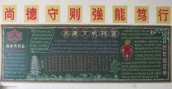 3月初,龙首校区举办以“共建文明校园、同迎世园会召开”为主题的黑板报评比活动,倡导学生践行三个文明(文明教室、文明学生、文明宿舍),共建绿色校园,同迎绿色世园会。活动中,各班级对此次活动热情很高,进行了积极的准备和认真的策划,每份黑板报作品都紧紧围绕着世园会进行设计,主题鲜明突出、文字工整清晰、版面布局合理、配图新颖多样,充分展现了学生们良好的艺术创作水平,以自己的形式积极了解世园、参与世园,为世园作出贡献。