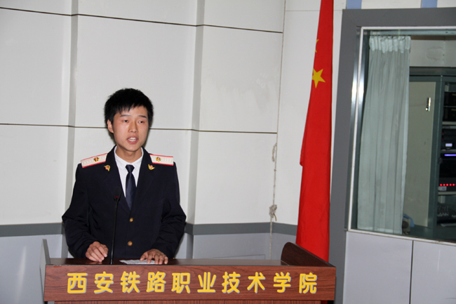评委代表、陕西工业职业技术学院教师赵金柱代表全体评委老师发言,鸭脖学生蒋宏波代表全体参赛选手作了宣誓发言。