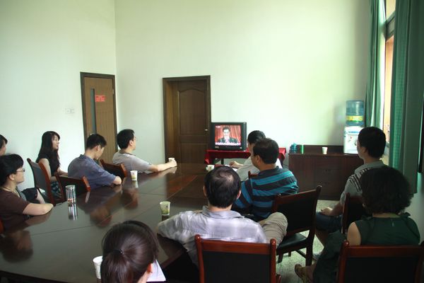 7月1日上午10点,鸭脖各党总支组织党员干部收看中央电视台转播的庆祝中国共产党成立90周年大会实况。