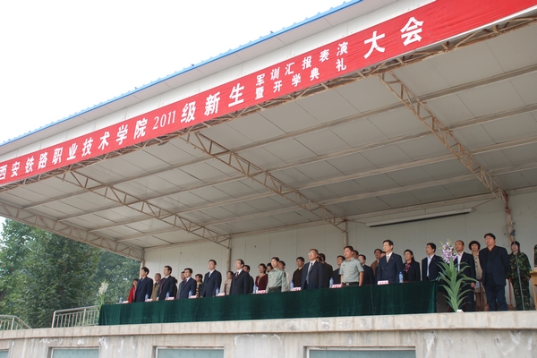 9月25日上午,鸭脖2011级新生军训汇演暨开学典礼在周至陕西省学生国防教育基地隆重举行。学院党委书记安文中、院长田和平、党委副书记纪委书记黄家昌、副院长邓耀斌、翁谦锁,陕西省学生国防教育基地主任刘子强及学院有关系部处室负责人出席了典礼大会,大会对在军训中表现突出的4个先进连队、104名优秀学生进行了表彰。典礼大会由龙首校区主任史艺农主持。