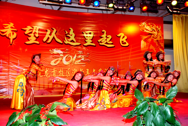 12267时,龙首校区在多功能厅举办了主题希望从这里起飞2012迎新年元旦文艺晚会。学院党委书记安文中、院长田和平,党委副书记、纪委书记黄家昌,副院长邓耀斌、翁谦锁及学院部分处室领导,师生近六百名同学观看了演出。龙首校区党总支书记司西平主持晚会,主任史艺农致新年贺词。