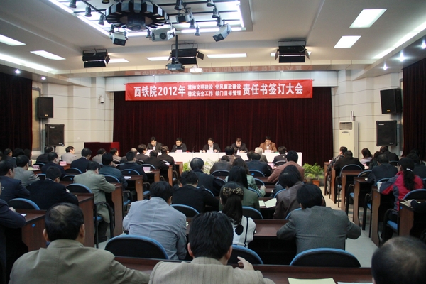 3月31日下午,学院召开2012年精神文明建设、党风廉政建设、稳定安全工作、部门目标管理责任书签订大会。学院党委书记安文中,院长田和平,党委副书记、纪委书记黄家昌,副院长邓耀斌、副院长翁谦锁出席大会,全院副科级以上管理干部参加了会议。会议由安文中同志主持。