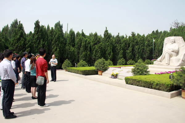 在拜谒仪式上,全体党员群众向习仲勋塑像鞠躬致敬,组织部部长任治军作了代表发言。他说,本次教育实践活动使大家深切感受到了习仲勋等老一辈无产阶级革命家在我国革命、建设、改革过程中的艰辛付出,我们国家取得今天的巨大成就来之不易,希望全体党员群众继承老一辈无产阶级革命家的光荣传统,积极发扬优良作风,深入推进创先争优活动,结合学院基层组织建设年活动和“三问三解”活动的具体要求,在工作中更好地发挥基层党组织的战斗堡垒作用和广大党员的先锋模范作用,为学院改革发展做出新的更大贡献。随后,大家绕陵墓一周并在陵园合影留念。
