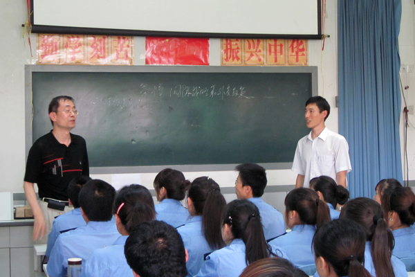 和平、黄家昌课间与学生和老师进行交谈,了解学生的学习和班风、学风情况。听完课后,田和平走上讲台,对本课进行了点评,肯定了思政课采取师生互动教学方式,特别是对学生在课堂上积极发言的学习热情给予了表扬。他勉励同学们要善思、善学,勇于钻研,大胆发言,不要怕错要利用好在学校短暂的学习时间,努力锻炼和提高自己的能力和综合素质,为未来成为高素质的职业劳动者和实现自己的人生价值打好坚实的基础。