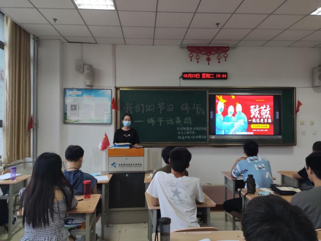 此外,6月23日晚上,各班团支部利用班会时间开展了“我们的节日·端午”抗疫精神宣讲活动,通过“抗疫英雄事迹分享会”“最美逆行者故事会”“端午话英雄”等形式,将抗疫期间涌现出的各行各业的抗疫英雄的勇于担当、甘于奉献精神与节日文化相融合,让同学们走进英雄、了解英雄、以英雄为榜样,丰富节日内涵,进一步增强实现中华民族伟大复兴中国梦的信心和信念。