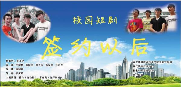 校园碎戏《签约以后》由党委宣传部、现代教育技术中心、机电工程系党总支联合摄制,基础部、图书馆、就业指导中心等部门给予有力协助。