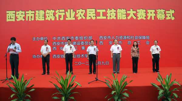 9月9日,西安市建筑行业农民工技能大赛开幕式及理论考试在鸭脖举行。此次技能大赛由市委组织部、西安市人力资源和社会保障局、西安市城乡建设委员会、市总工会、市建工集团联合举办,鸭脖承担本次技能大赛理论考试的考场和考务工作。