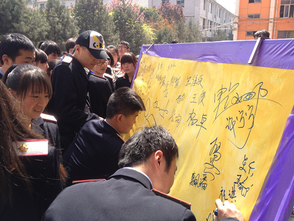 仪式上学生社团联合会常委胡晨对活动的整体内容向大家进行了介绍;院学生会主席张晨传达了关于“六个文明”的活动要求;团委办公室副主任张晨曦对活动实施过程进行了详细的说明。最后,近300名团、学、社干部参观了《诚信中国》、《以礼相待 和谐校园》、《文明上网 健康成长》等宣传展板,并郑重的在签名板上签下了自己的名字。
