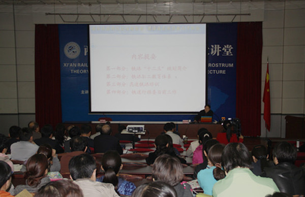聘任仪式后,应学院邀请,任天德教授在学院大讲堂作了题为“铁路发展与人才培养”的专题报告。报告内容包括:铁路“十二五”规划、铁路职工教育培训体系、高速铁路岗位培训、行指委近期工作等。学院本部专任教师及全院科级以上干部聆听了报告。