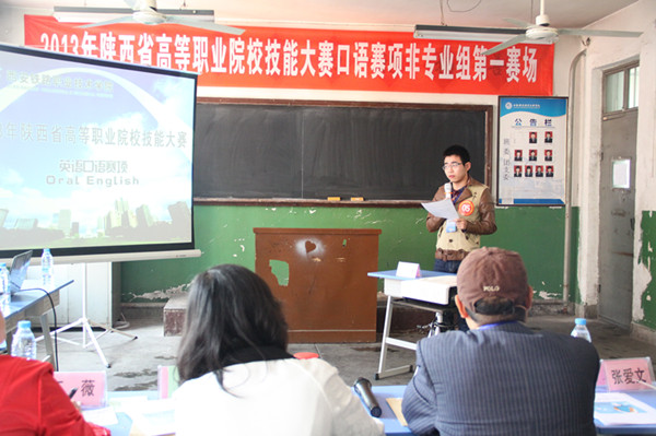 4月24日,由陕西省教育厅主办,yabo鸭脖官网承办的2013年陕西省高等职业院校技能大赛英语口语赛项在学院隆重举行,陕西省教育厅高教处副处长范永斌,学院院长田和平出席了大赛开幕式。开幕式由学院副院长邓耀斌主持。