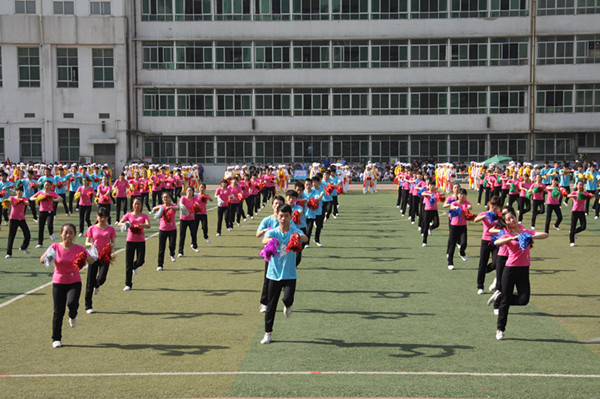 开幕式后,各系部大型团体操表演吸引了众人的眼球。学生们身着各色服装,跳着优雅动感的舞步,喷绘出体育场内一道道亮丽的风景线——电子信息系的《五月的鲜花》、交通运输系的《团体操》、机电工程系的《安塞腰鼓》、电气工程系的《扇子舞》、牵引动力系的《搏击操》、临潼校区的《最炫民族风》、龙首校区的《麦浪》等具有时代感和青春活力的精彩表演给全场师生留下难忘的印象。