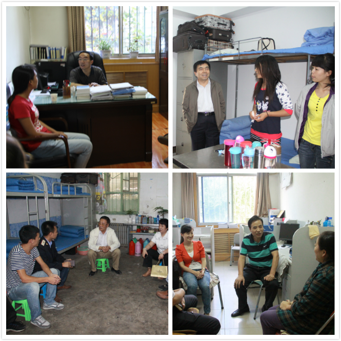 9月27日,党委副书记、纪委书记黄家昌走进电气工程系101宿舍,详细询问大家学习、就业、生活、家庭情况,征求同学们对学院领导班子的意见和建议,还嘱咐同学们国庆期间出行一定要注意安全。9月29日,副院长邓耀斌、翁谦锁分别深入到机电工程系和电子信息系,与师生一对一谈心谈话,查看学生住宿情况,了解基层一线需要解决的问题。10月9日,院长田和平走进牵引动力系2号公寓115宿舍与学生座谈交流,征询同学们对学院在各个方面的意见建议;10月10日,田院长再次走进牵引动力系教室,与联系老师和学生座谈。10月10日,党委书记安文中深入交通运输系,与三名联系学生座谈,听取了同学们的意见和建议,结合自己的求学和工作经历,与同学们分享了个人成长的一些心得体会,还寄语大家:要摆正位置,踏踏实实做一枚普通的“螺丝钉”,做一枚深深扎根道床上的“道钉”;要端正学习态度,既不要因为已经被用人单位预录而产生松懈、放松要求,更不能因为暂时还没有签约而思想波动、自暴自弃;要发挥班团干部主观能动性,组织动员广大同学开展和参加丰富多彩、有益身心的活动,提升综合素质,增强凝聚力,在校园里传播“正能量”。10月14日,黄家昌与联系的电气工程系师生座谈,了解学生管理工作中存在的问题。