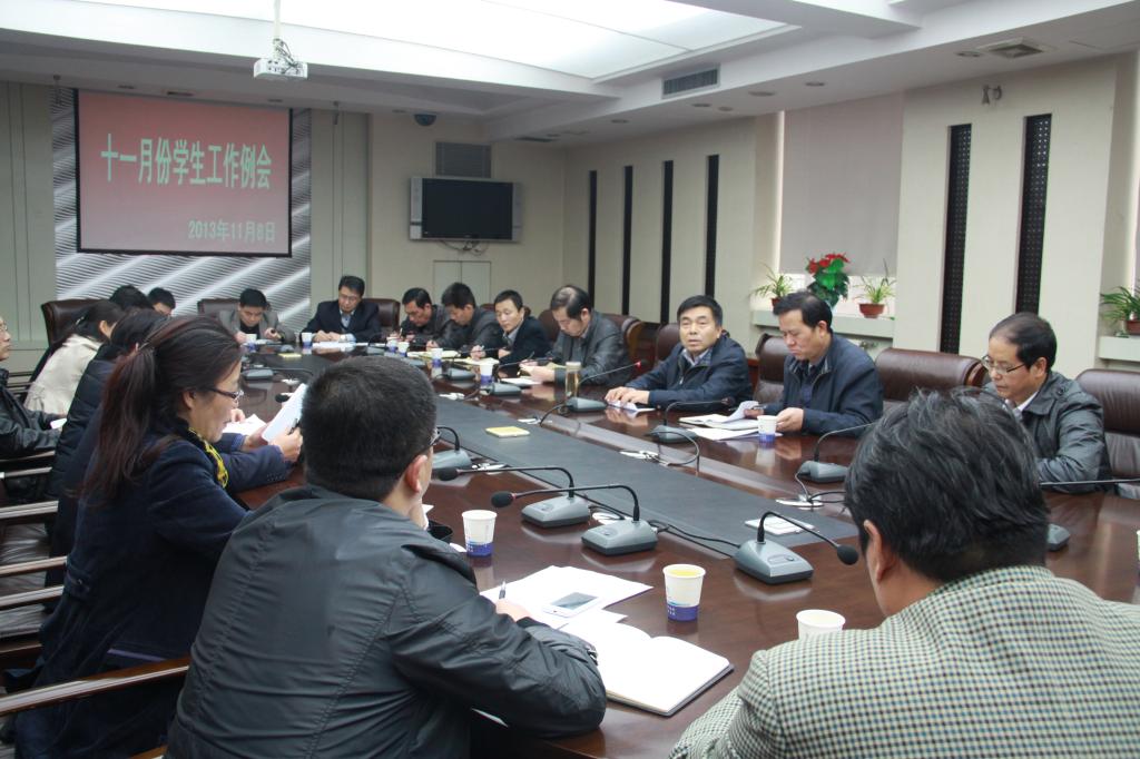 11月8日,学院召开十一月份学生工作例会研讨学生工作。党委副书记、纪委书记黄家昌主持会议并讲话。学生工作部、就业指导中心及团委负责人,各系部党总支书记,学工部各科长、各系部学工办主任和分团委书记等20余人参加会议。
