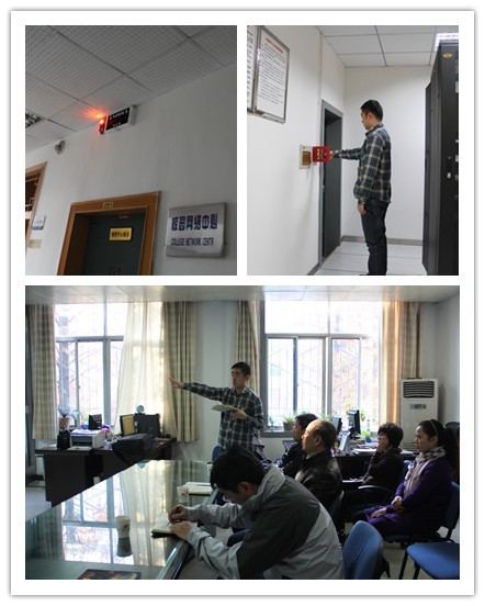 随后,又进行了网络机房消防安全演练。模拟机房内出现“烟雾”,烟雾触发温度感应器及烟雾感应器,瞬间声光警报器警笛震耳,警灯闪烁。七氟丙烷气体消防系统即将在三十秒内开启,网管人员立即做出响应,根据消防应急预案,采用边讲解边实际操作的方式,迅速确认起火原因,判断火势,针对火警情况确定是否需要启动灭火装置,随即采取相应的措施,手动关闭消防控制系统,恢复常规设置。