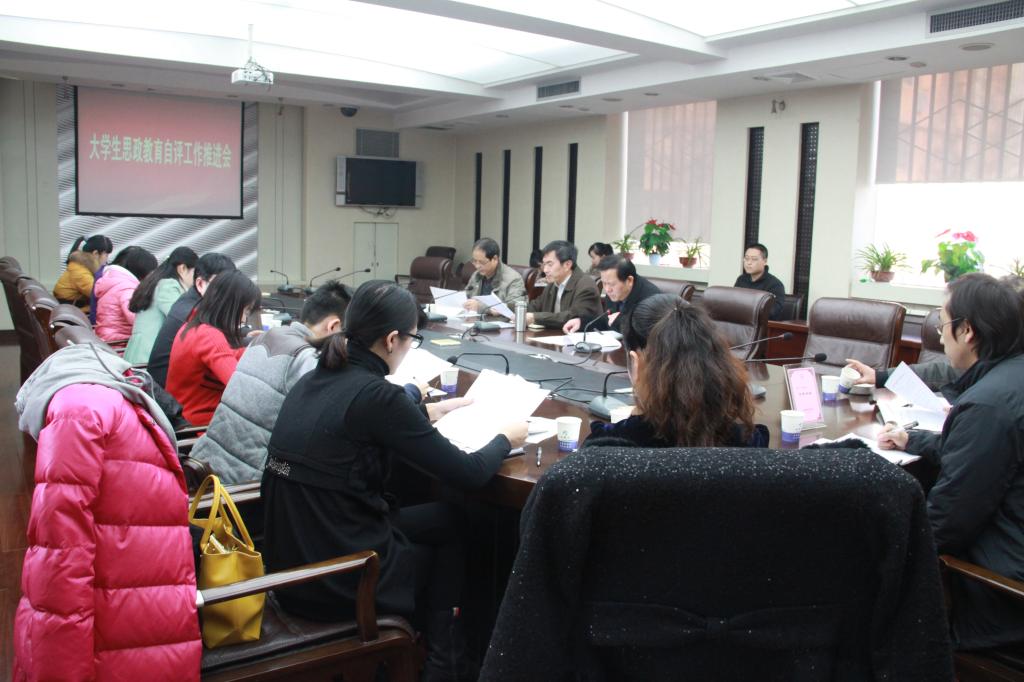 为提高大学生思想政治教育工作规范化、科学化水平,提升大学生思想政治教育质量,中宣部、教育部于今年10月下发了《关于开展〈全国大学生思想政治教育工作测评体系(试行)〉贯彻执行情况自测自评工作的通知》(教思政函〔2013〕11号)。为顺利完成中宣部、教育部及省委高教工委的工作要求,在接到文件后,鸭脖立即成立自评领导小组及办公室,制定自评实施方案,分解指标任务,部署开展自测自评工作。11月20日,学院召开自评工作动员会,经过半个多月的自评准备,为督查工作的落实情况,特召开此次会议。