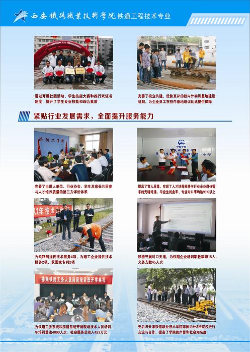 通过项目建设,达到了“建强一个专业、历练一支队伍、培育一批人才、辐射和带动一个专业群和服务一方经济”的良好效果,铁道工程技术专业必将发挥出特色引领的重要功能。(临潼校区、教务处、评建办、财务处)