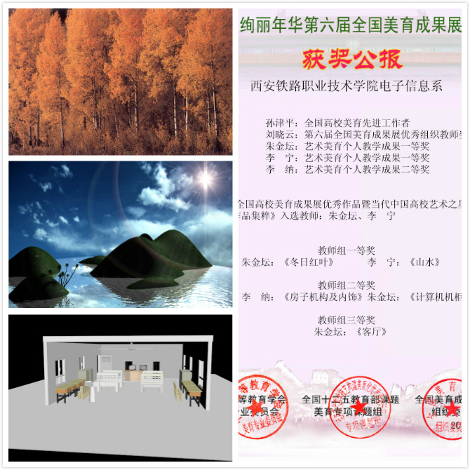 第六届全国美育成果展是全国“十二五”规划教育部课题美育专项课题组为深入学习宣传党的十八大精神,全面贯彻党的教育方针,实施以美育人的人文教育理念,根据《中共教育部党组关于在各级各类学校深入开展“我的中国梦”主题教育活动的通知》而决定开展的大型竞赛活动,设艺术美育,学科美育和校园美育等竞赛项目。此项活动的开展是为了推动学校美育教育的普及与深入,同时也是对广大高校教师在进行美育教学过程中探索出成果的推广和认可,具有较高的学科前沿创新性和科研实验性。(电子信息系 刘晓云供稿)