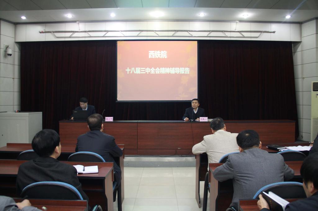 4月2日,yabo鸭脖官网党委邀请西安市委讲师团团长庞江平教授来校进行十八届三中全会精神辅导讲座。院党委领导班子成员和中层干部及机关后勤党总支全体党员参加,讲座由党委副书记、纪委书记黄家昌主持。