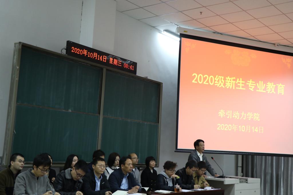 为帮助2020级新生进一步了解所学专业内容和特点,培养学习专业的兴趣,掌握科学的方法,合理制定今后的学习计划,尽快适应新环境,新生活。10月14日上午,牵引动力学院在101阶梯教室采用现场直播的方式对2020级16个班开展了新生专业教育。牵引动力学院院长李益民、党总支书记李贞伟、副院长林辉、办公室主任肖贤、学工办主任陈广勇、办公室副主任孙正华、铁道机车车辆专业带头人崔晶、城轨车辆技术专业带头人马仲智、动车组驾驶与维修专业带头人李冰毅及三个专业教研室主任及副主任参与了此次专业教育活动。办公室主任肖贤主持专业教育活动。