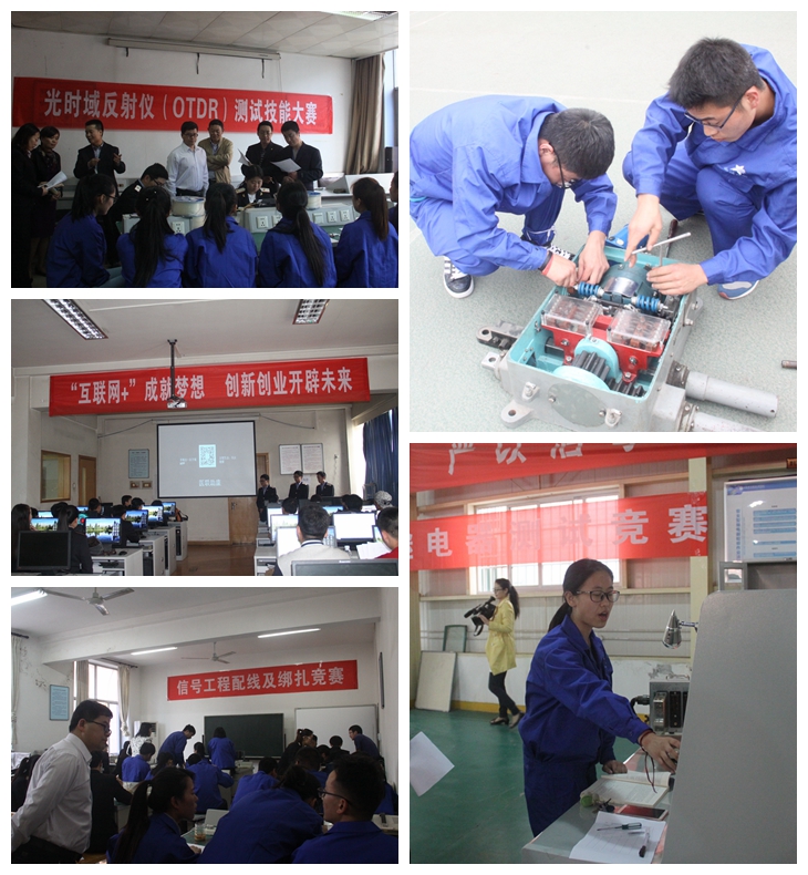 学生职业技能竞赛从4月初开始吸引了1300多名学生参加预赛,最终有181名学生进入决赛,参加“光时域反射仪(OTDR)测试技能大赛” “信号工程配线及绑扎”等八个项目的比赛。