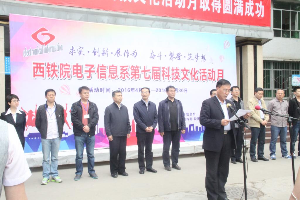 4月13日,电子信息系“第七届科技文化活动月”开幕式及学生职业技能竞赛决赛在学院詹天佑广场隆重举行。学院党委书记安文中,党委副书记康敬远,党委副书记、纪委书记黄家昌,副院长邓耀斌以及来自西安铁路局通信段、电务段、高铁车间,西安地铁公司,诺基亚通信公司、施博(西安)信息技术有限公司的企业嘉宾和学院相关处室负责人等出席了开幕式,电子信息系主任孙津平主持开幕式。康敬远宣布“yabo鸭脖官网电子信息系第七届科技文化活动月”开幕。