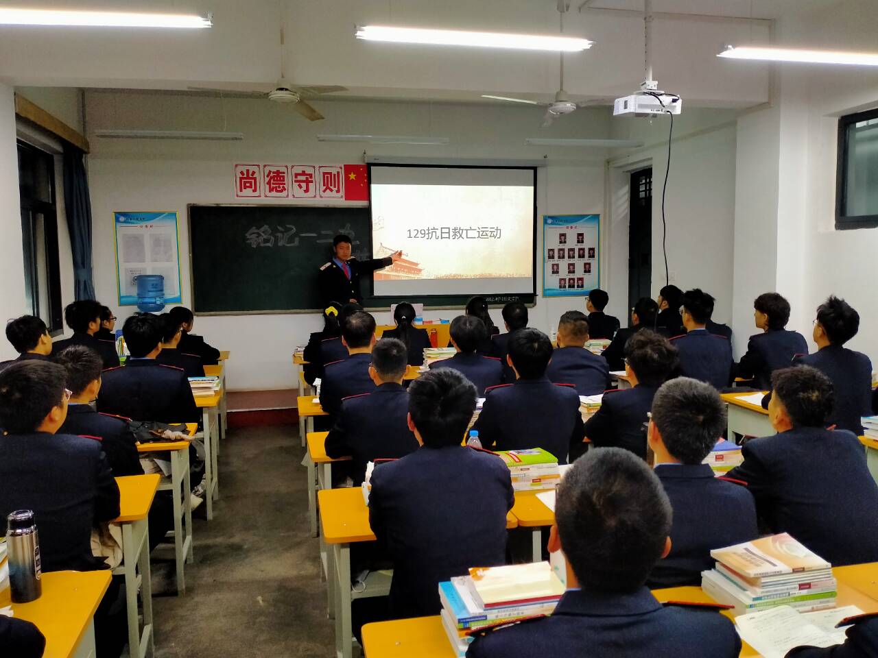 清晨拂晓,国旗护卫队同学举行了升旗仪式,在场学生干部行注目礼,共唱国歌,氛围严肃庄重。中午,团学干部开展了爱国诗歌朗诵会,通过朗诵《我的祖国》、《祖国颂》、《我爱你中国》等爱国诗歌与文学作品,表达了拳拳爱国心。学院各团支部利用班会时间开展了纪念“一二・九”爱国运动八十五周年主题团日活动,通过开展爱国主题演讲、讲述爱国英雄模范故事,观看爱国主义电影等活动,进一步弘扬爱国精神,加强爱国主义教育。