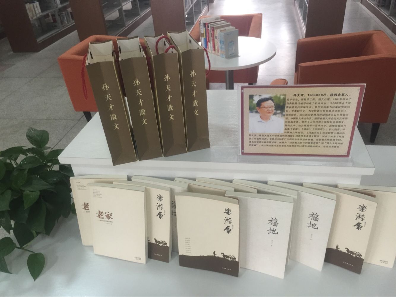 元月4日,鸭脖78级校友孙天才系列作品在图书馆一楼大厅展出。孙天才先生是中国散文学会会员,陕西省散文学会纪实文学委员会副主任,现任西安铁路局劳动服务总公司党委书记。曾在《人民日报》等报刊发表散文、报告文学、杂文随笔一百余万字,多次获省、市和铁路文学奖项。《风追司马》获全国第七届冰心散文奖,受到著名作家贾平凹、著名文学评论家李星好评。被誉为“陕西散文创作的重要收获”和“渭北大地深情的歌者”。在2016年学院60华诞之际,为母校图书馆赠送《福地》、《乐游园》、《老家》等书籍。