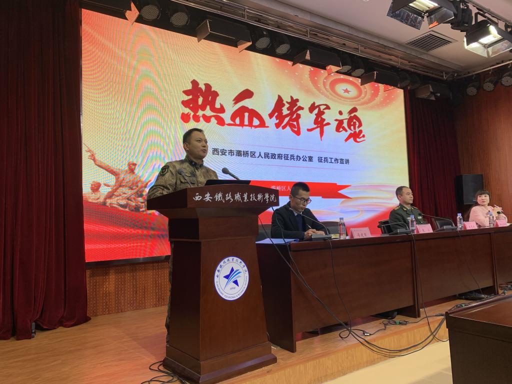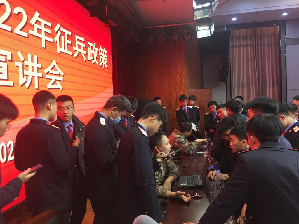 12月6日,学院保卫处(武装部)会同灞桥区武装部,在港务校区办公楼一楼报告厅,组织召开了2022年春季征兵政策宣传、现场咨询会,参会人员有灞桥区武装部部长刘志光、政工科科长侯兆洋帆、军事科参谋张宁,港务校区各二级学院辅导员、班主任、学生260余人。