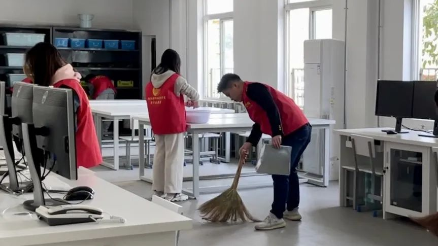 学院青年志愿者利用课余时间自发地在教学楼、实训室、人行道、绿化带、操场、餐厅等公共区域开展校园卫生大扫除义务劳动志愿服务,全面清扫校园内的塑料袋、果皮纸屑等垃圾杂物,并进行垃圾分类,帮助餐厅阿姨收拾饭后餐具等,为营造整洁舒适的学习环境,助力美丽绿色的校园建设贡献了自己的青春力量。