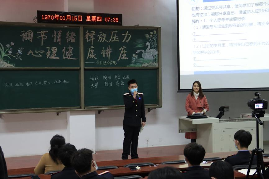 加强大学生心理健康教育,是落实立德树人根本任务的必要措施。2022年3月21日晚,牵引动力学院在105阶梯教室为各班心理委员开展了“调节情绪,释放压力”心理健康讲座,本次讲座邀请到了马克思主义学院心理教研室主任李慧静老师作为主讲人,活动由团总支书记杨若老师主持。